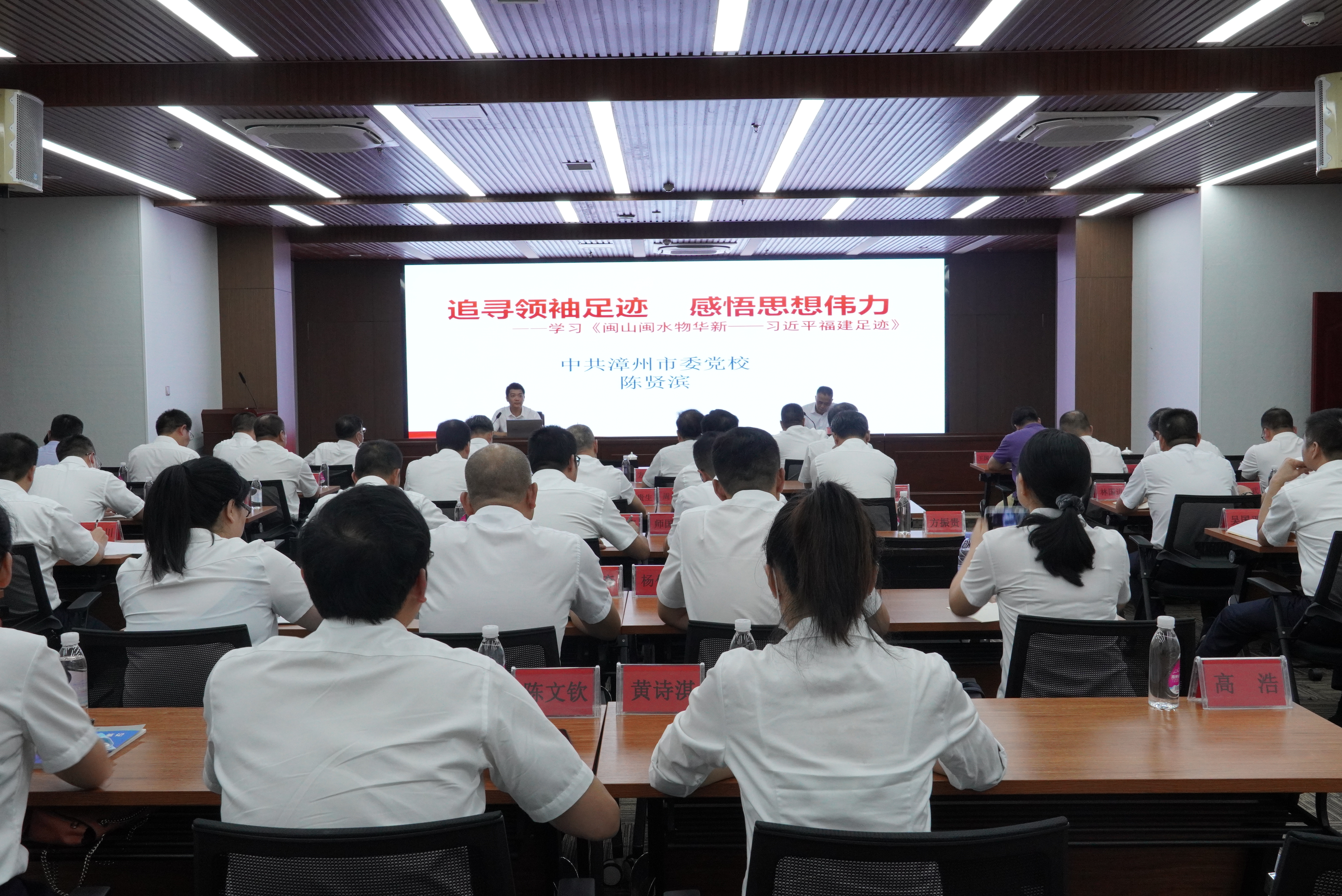 此次培訓邀請中共漳州市委黨校哲學法學教研室主任、副教授陳賢濱同志以《追尋領袖足跡 感悟思想偉力》為題,重點學習《閩山閩水物華新——習近平福建足跡》,從“為何學、學什么、怎么學”等三個方面,深入淺出地闡述了習近平同志為福建改革開放和現(xiàn)代化建設事業(yè)所作出的一系列極具前瞻性、開創(chuàng)性、戰(zhàn)略性的理念創(chuàng)新和實踐探索。本次專題講座主題鮮明、內(nèi)涵豐富、思想深刻,對集團領導干部更好地學習習近平新時代中國特色社會主義思想具有很強的指導作用。