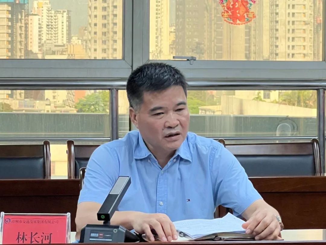 6月28日下午,漳州交通集團(tuán)總經(jīng)理林長河帶隊到交發(fā)建設(shè)集團(tuán)市政公司、通正公司調(diào)研。集團(tuán)總工程師陳靜明、總工辦主任林志東,交發(fā)建設(shè)集團(tuán)董事長趙德宗、副總經(jīng)理盧其昌,市政公司、通正公司等相關(guān)人員參加調(diào)研。