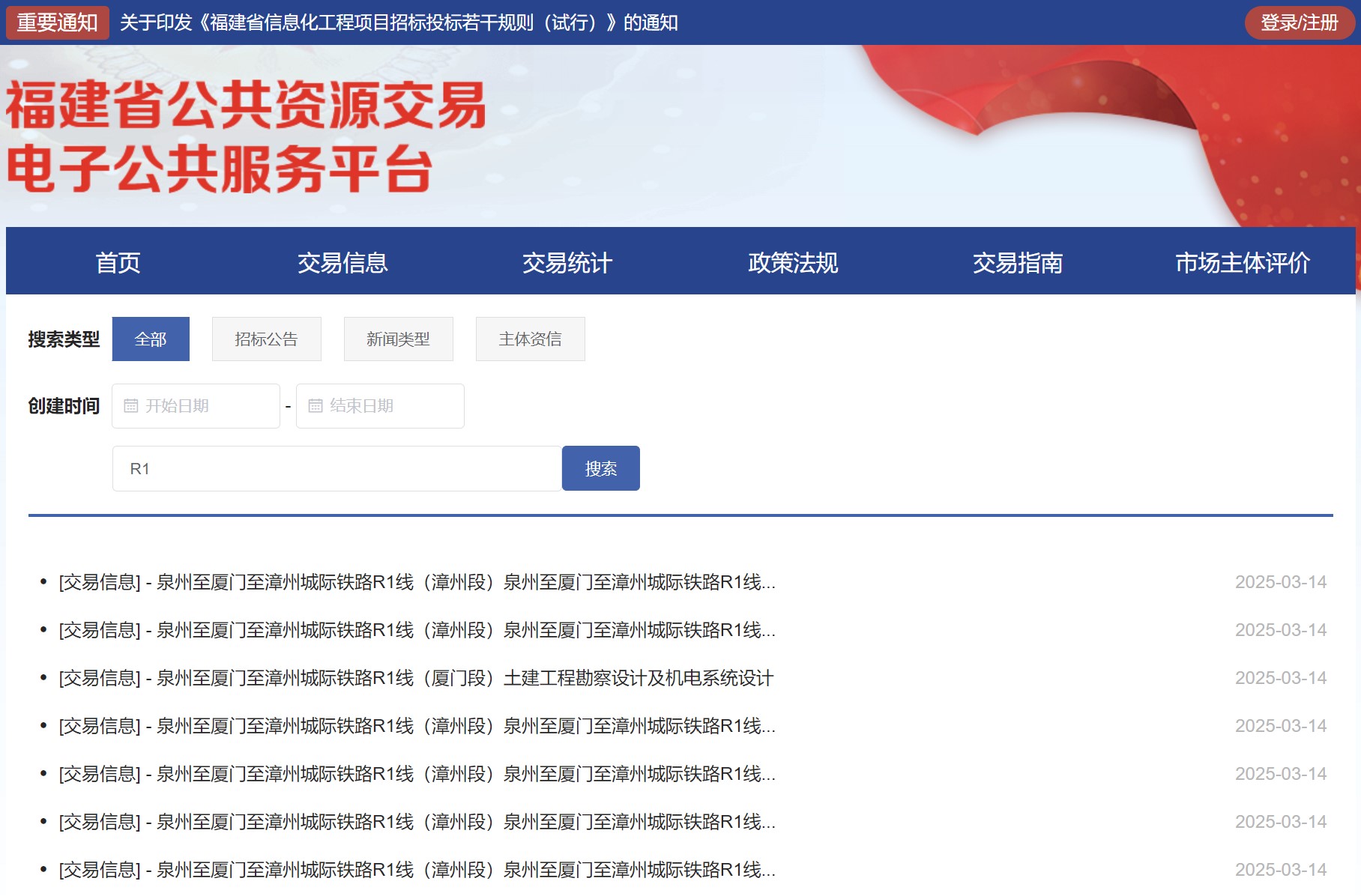 作為R1線項目漳州段業(yè)主單位的漳州市鐵路投資開發(fā)有限公司,將嚴格落實公開透明招投標程序,確保項目高效推進。同時,招標公告同步在“福建省公共資源交易電子公共服務平臺”和“漳州市工程項目交易中心”發(fā)布,公眾可通過該平臺查詢詳細信息。