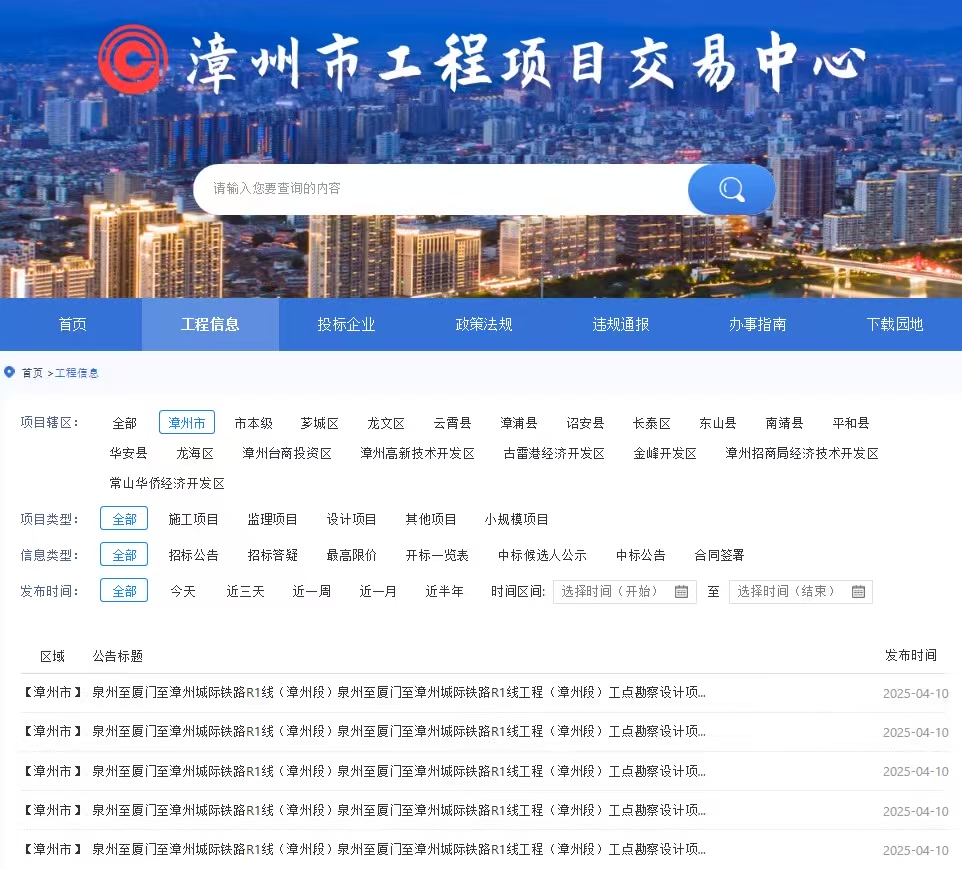 4月10日,由建設單位漳州市鐵路投資開發(fā)有限公司主導的泉州至廈門至漳州城際鐵路R1線(漳州段)項目迎來關鍵節(jié)點——第二輪招標公告正式發(fā)布,標志著該項目進入全面深化設計與實施階段。此次招標涵蓋五大標段,涉及停車場、應急指揮中心、變電設施等核心工程,進一步推動項目高效落地。